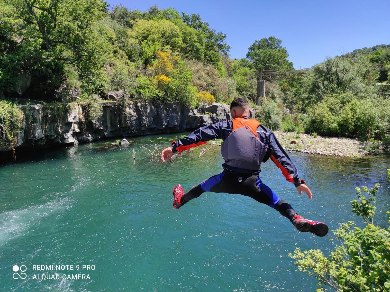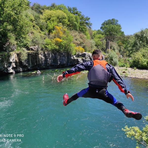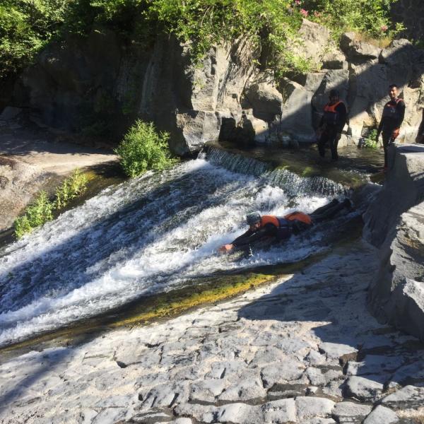 Quest'escursione di Body rafting parte con un salto di cinque metri in una piscina del fiume alle Gurne dell' Alcantara, poi nuoteremo fino a raggiungere un seconda piscina dove faremo un salto con la tecnica del canyoning per poi usare il corpo come una zattera facendoci trasportare dalla corrente fino al terzo salto. Alla quarta piscina ci divertiremo scivolando lungo un tobogan e goderci le rapide e l'acqua cristallina. prima di per raggiungere l'ultima gurna, quella dove la natura crea uno spettacolo mozzafiato useremo la tecnica del River Trekking e del Body Rafting. In quest'ultima gurna faremo un'altro tuffo, ci rilasseremo prima di tornare al punto di partenza e concludere la nostra escursione.